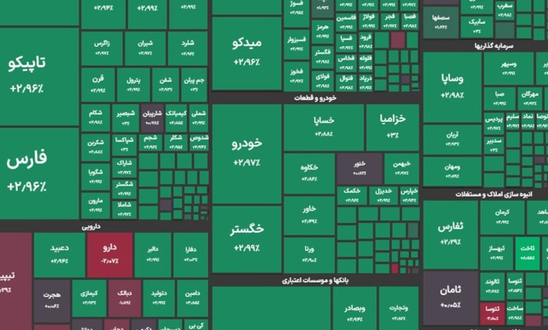 شاخص کل بورس در پایان معاملات امروز با جهش ۱۱۲ هزار واحدی به ۴ میلیون و ۲۸۸ هزار واحد رسید.