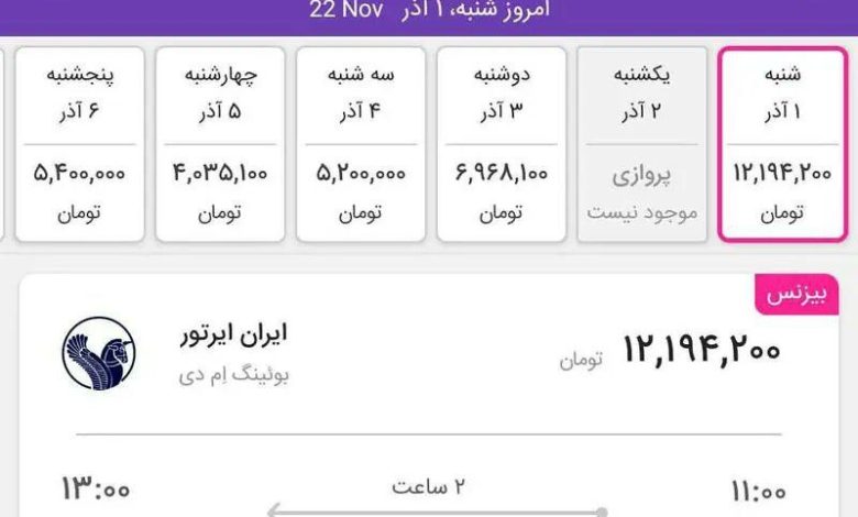 به گزارش وارمگ؛ قیمت یک بلیط هواپیمای بیزینس کلاس از چابهار به تهران حدود ۱۲ میلیون تومان است و دیگر کلاس‌ ها هم ۵ تا ۶ میلیون تومان قیمت دارند. مگر از نظر امکانات چه تفاوتی وجود دارد که باید ۱۲ میلیون تومان پرداخت شود؟