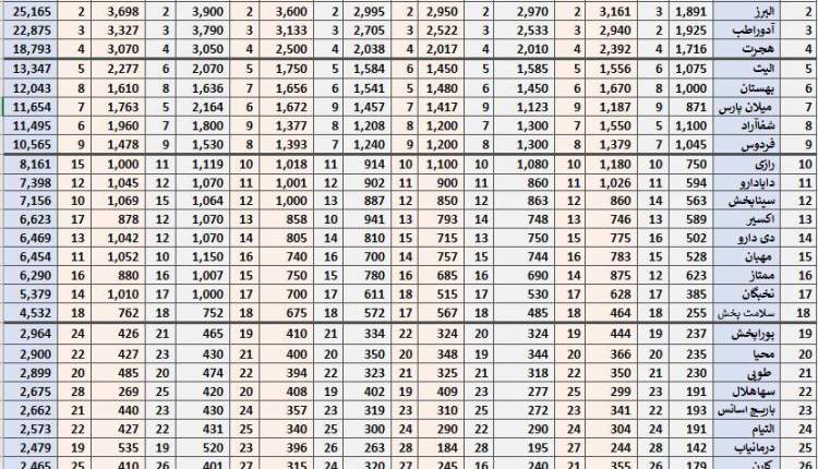 در انتهای جدول، شرکتهایی چون سلامت پخش، پوراپخش،