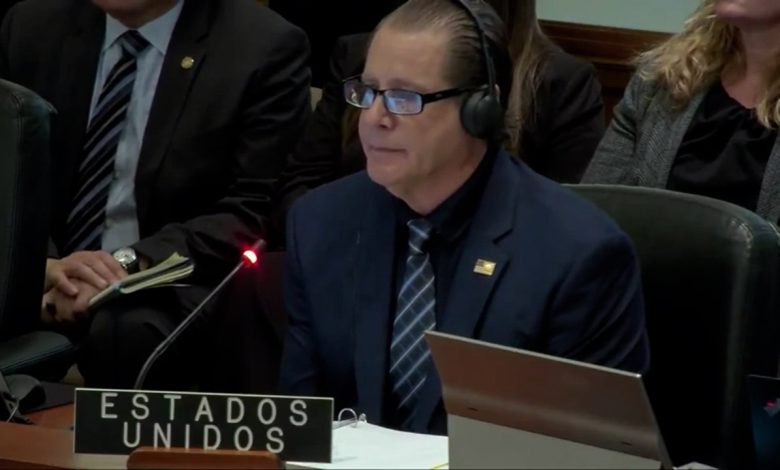 وارمگ – سخنرانی «لیاندرو ریزوتو» سفیر ایالات متحده در سازمان کشورهای آمریکایی درباره عملیات نظامی آمریکا در ونزوئلا با اعتراض یک فعال ضد جنگ آمریکایی قطع شد.