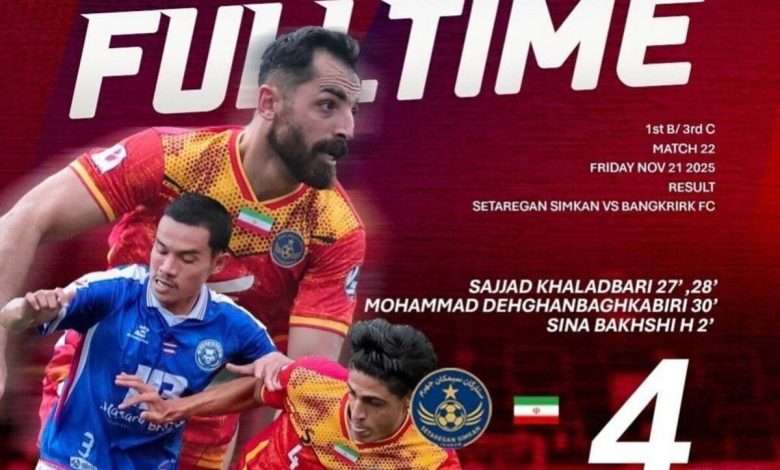 طبق اعلام فدراسیون ورزشهای همگانی، مرحله یک هشتم نهایی لیگ قهرمانان مینیفوتبال آسیا ۲۰۲۵ در اندونزی امروز(جمعه) با برگزاری ۴ دیدار آغاز شد که در مهمترین بازی تیم ستارگان سیمَکان جهرم به مصاف تیم بانگکدیرک تایلند رفت که در پایان این بازی پرگل و مهیج تیم سیمَکان جهرم موفق شد با نتیجه ۴ بر ۳ از سد حریف سختکوش تایلندی خود بگذرد تا نماینده ایران ضمن صعود به مرحله یک چهارم نهایی جواز حصور در جام باشگاههای جهان را هم کسب کند.