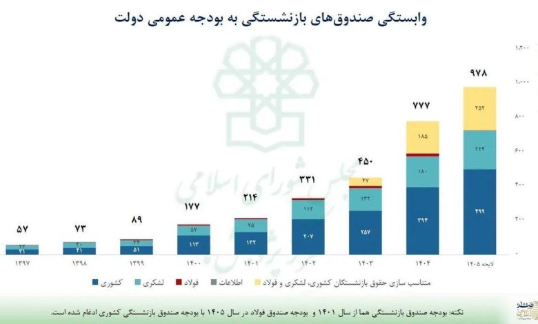 گزارش تازه مرکز پژوهش‌های مجلس از لایحه بودجه ۱۴۰۵ نشان می‌دهد نظام بازنشستگی کشور بیش از هر زمان دیگری به منابع عمومی وابسته شده و پرداخت حقوق بازنشستگان به یکی از سنگین‌ترین بارهای ساختاری بودجه دولت تبدیل شده است.