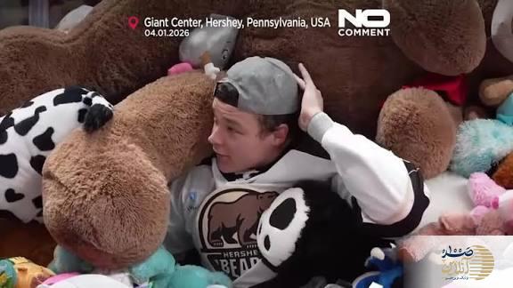 بهمحض اینکه تیم خرسهای هرشی گل اول را زد، تماشاگران در جریان دیداری از لیگ آمریکایی هاکی روی یخ هزاران خرس عروسکی و اسباببازی نرم را روی یخ پرتاب کردند.