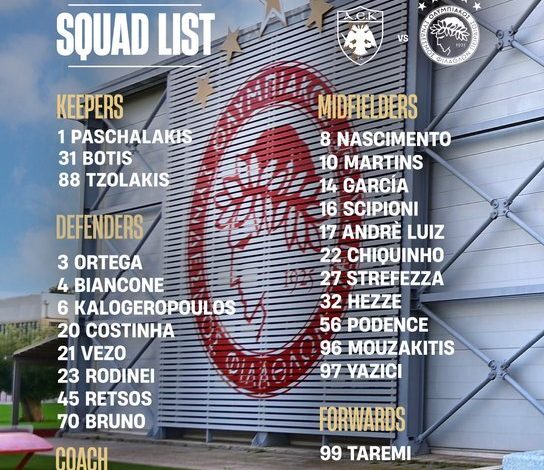 لیست بازیکنان المپیاکوس برای این بازی امروز شنبه ۱۱ بهمن اعلام شد که در بین بازیکنان مهاجم سرخ و سفیدها تنها نام مهدی طارمی به چشم می خورد و ایوب الکعبی مهم ترین رقیب طارمی در المپیاکوس در این بازی غایب خواهد بود./مهر