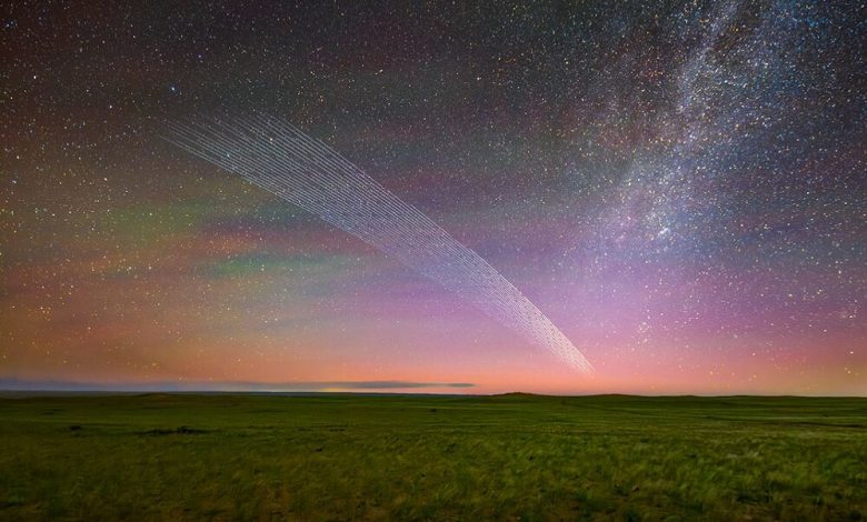 به گزارش وارمگ، آنچه در این عکس میبینید، دنباله بهجامانده از یک دنبالهدار نیست، بلکه یک توالی تایملپس هوشمندانه از گروهی از ماهوارههاست که در ماه ژوئن در مدار زمین میچرخیدند.